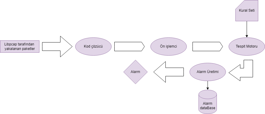 Ön işlemci: Detection Engine’ den önce paketleri ona hazırlar ve paket başlıklarındaki anormalliklere göre saldırı belirlemeye çalışır. Preprocessor genellikle parça parça gelen büyük veri parçalarını bir araya getirmek için çalışır.